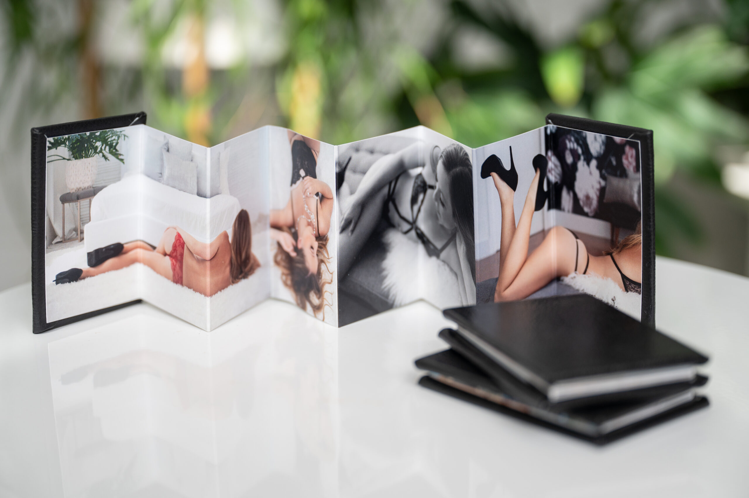 Accordion mini-albums are available as an add on to any collection and feature eight photos from your album. These mini albums come in a set of two and are perfect for tucking away in your purse or stashing in a suitcase for travel.